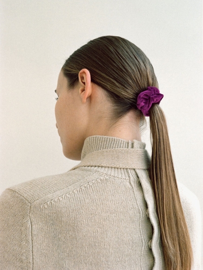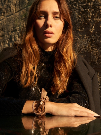 【SARARTH + TRESSE】SILVER Vegan pearl bracelet & MIA ruban chouchou in Brown