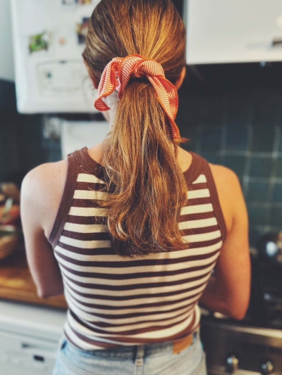 【SARARTH + TRESSE】SILVER Vegan pearl bracelet & MIA ruban chouchou in Terracotta