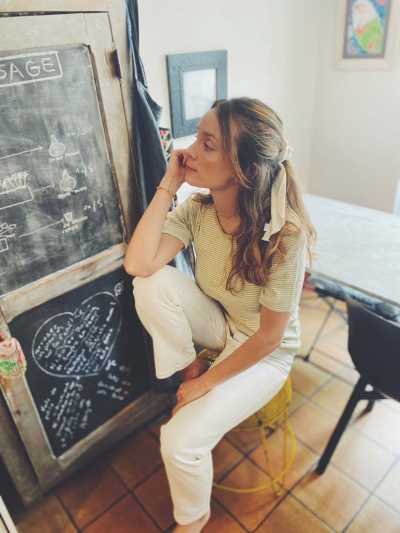 【SARARTH + TRESSE】SILVER Vegan pearl bracelet & MIA ruban chouchou in Mustard