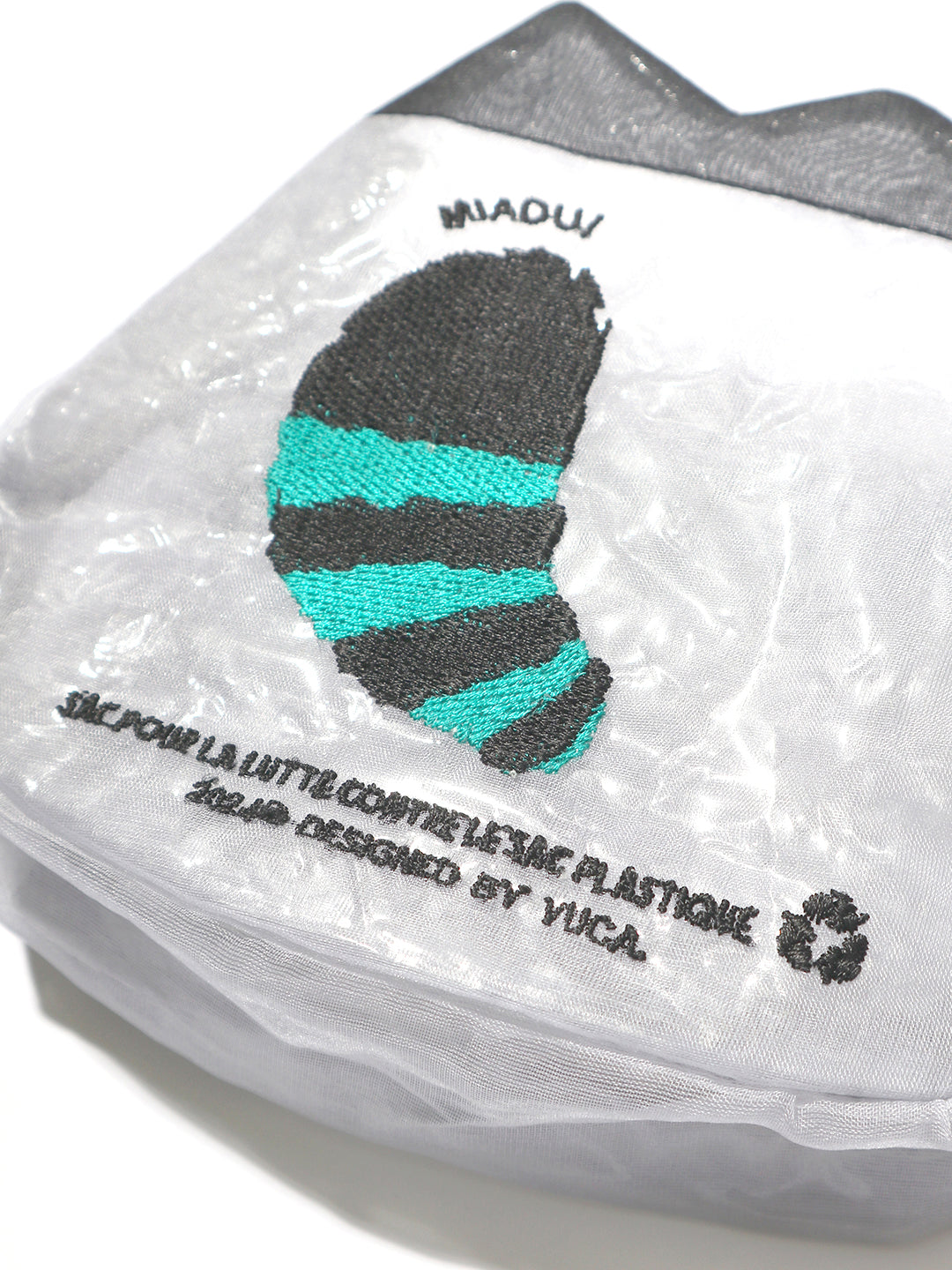 コンテンポラリーデザインとエコロジーイニシアチブを結びつける芸術的転換したオーガンジーバッグを作り上げています。 フランス人のブリジット、日本人のタナカのデュオのフィルターを通し日常にあふれる物を解釈しサスティナブルと物語をデザインに落とし込んでいます。 ヴィンテージ風の刺繍入りオーガンジーバッグは、消費社会のパラドックスを表現しており、市販のビニール袋に代わる独創的で抵抗力のあるバッグです。