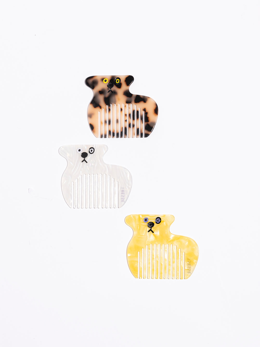 何犬ともいえないほんわり可愛い癒し系わんわんコームです。静電気を抑えるアセテート素材で、薄めのコームは前髪や顔わまりのセットに適していますので、持ち運んでいただくのにぴったりのサイズ感です。毎日つれて行きたくなるような可愛さと実用性を兼ね揃えています。オリジナルのケース付き