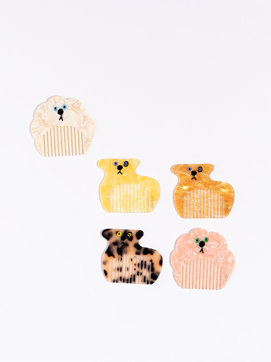 何犬ともいえないほんわり可愛い癒し系わんわんコームです。静電気を抑えるアセテート素材で、薄めのコームは前髪や顔わまりのセットに適していますので、持ち運んでいただくのにぴったりのサイズ感です。毎日つれて行きたくなるような可愛さと実用性を兼ね揃えています。オリジナルのケース付き