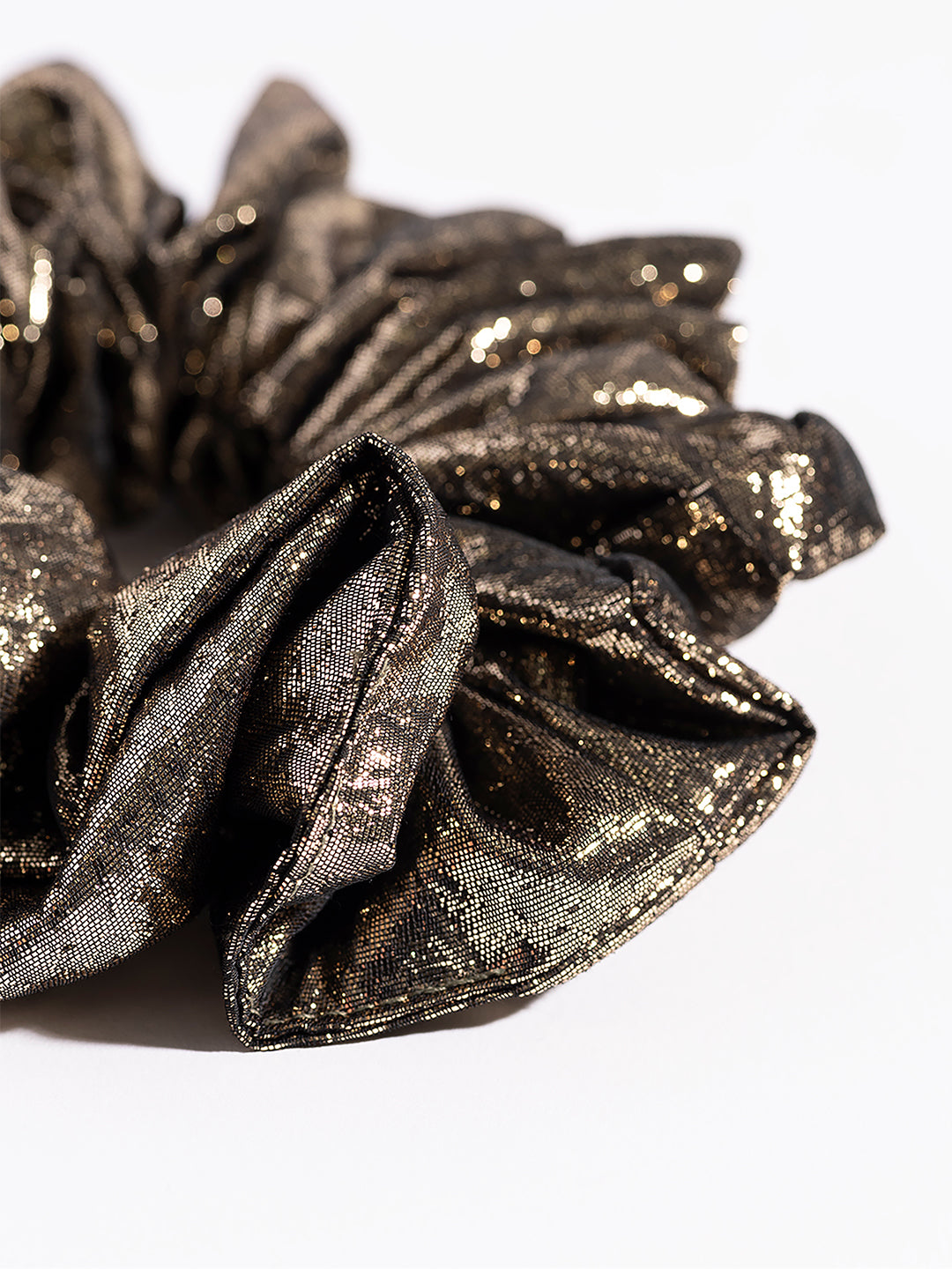 華やかな印象のビックなラメシュシュ。ボリューム感と派手すぎないラメ感が大人っぽく華やかにみせてくれます。パーティーシーンにもおすすめ。ぎゅっと結ぶだけでトレンド感のあるスタイルが完成します。