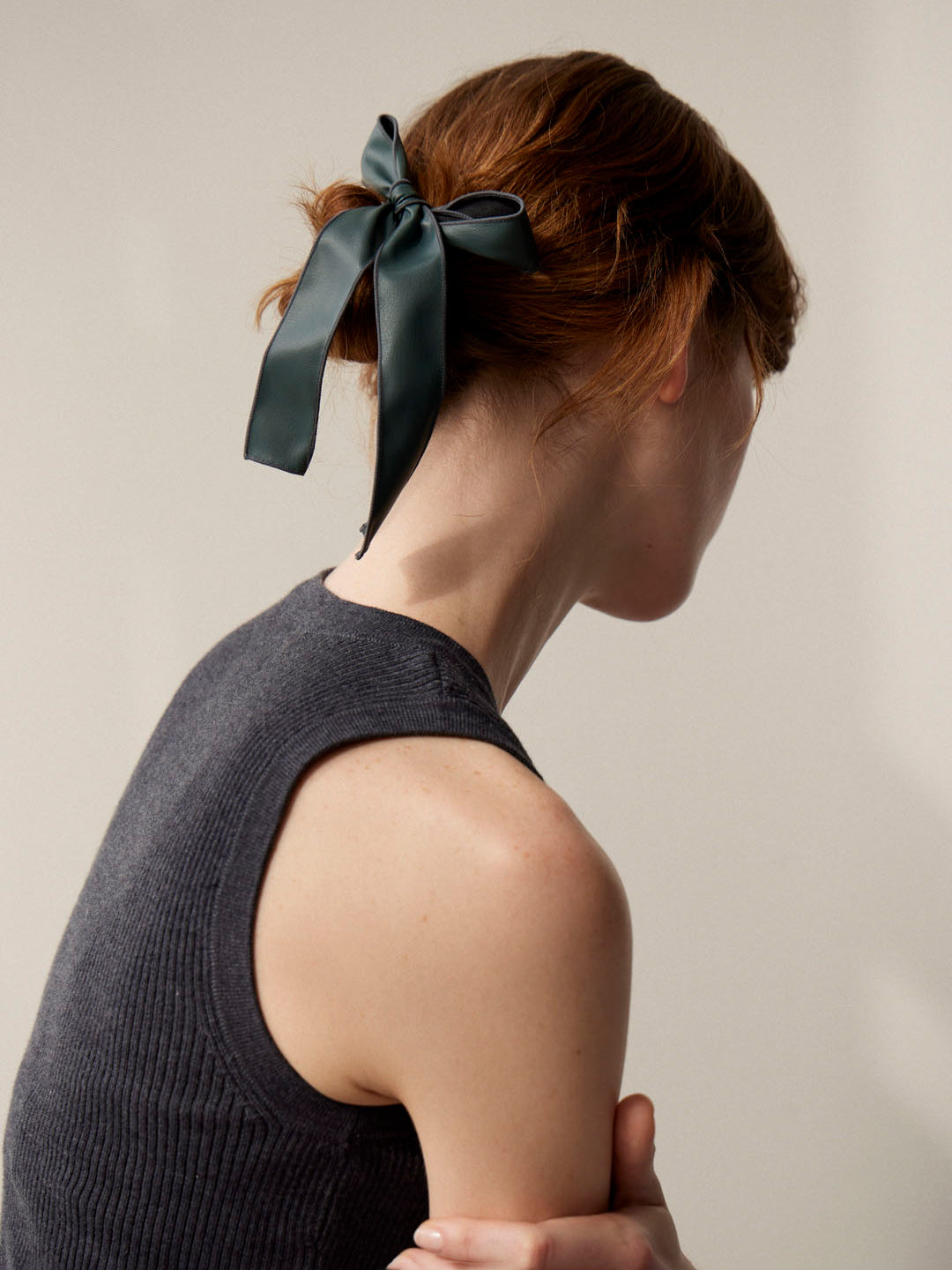 ローラシリーズにリボンシュシュが登場。ミニシュシュサイズの小さなシュシュに細身のレザーのリボンをつけました。ハードな生地感に細みのさらっと可憐なリボンが大人の可愛さを演出してくれます。オリジナルミニポーチつき