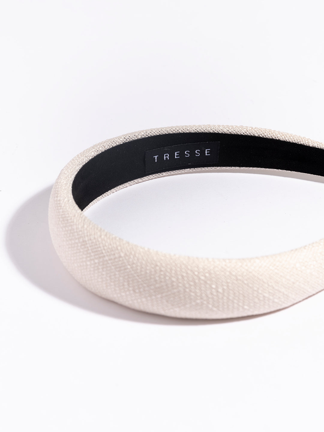 大好評のアリスのシリーズのカチューシャからフォーム部分が麻素材になって登場。ぽてっとした程良いブリューム感がどんな頭の形の人にも似合いやすく、長時間つけていても軽くて頭に馴染みやすいのもポイント。カチューシャ初心者の方に是非お試しいただきたい商品です。