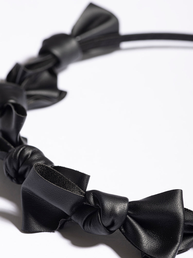 可憐なリボンのシルエットに、レザーの質感をプラスしたカチューシャ。
