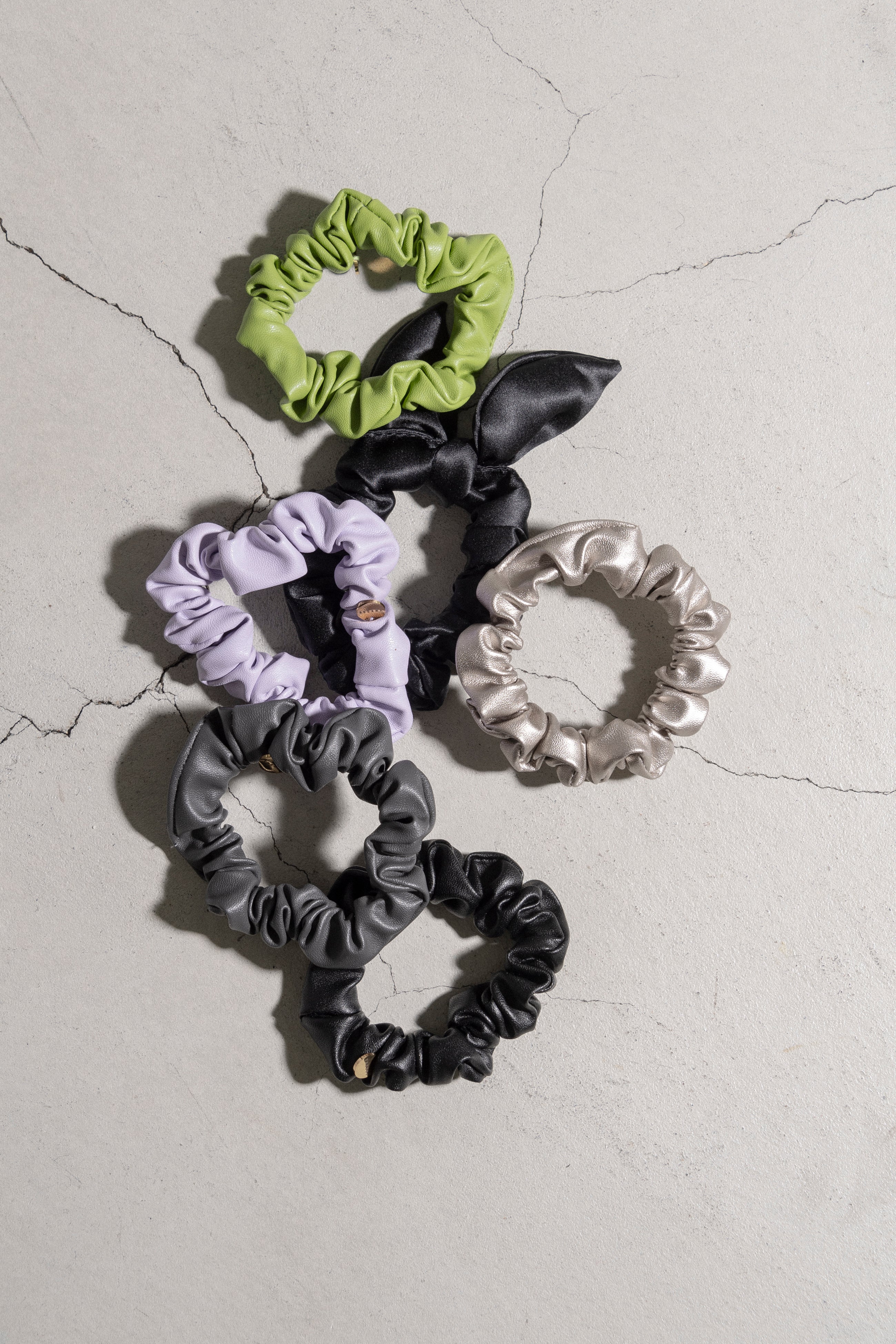 大人気のシルクのRUBANシュシュとヴィーガンレザーを使用したLOLAシュシュのセット。