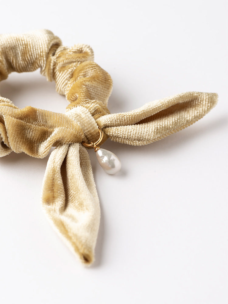 【SARARTH + TRESSE】GOLD Vegan pearl bracelet & MIA ruban chouchou in Mustard