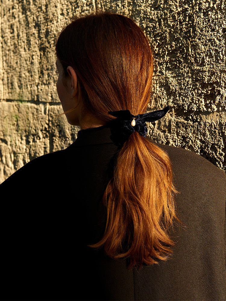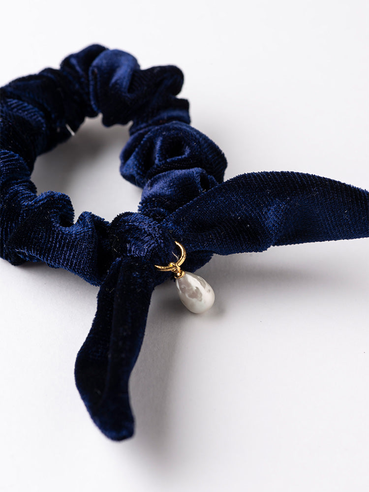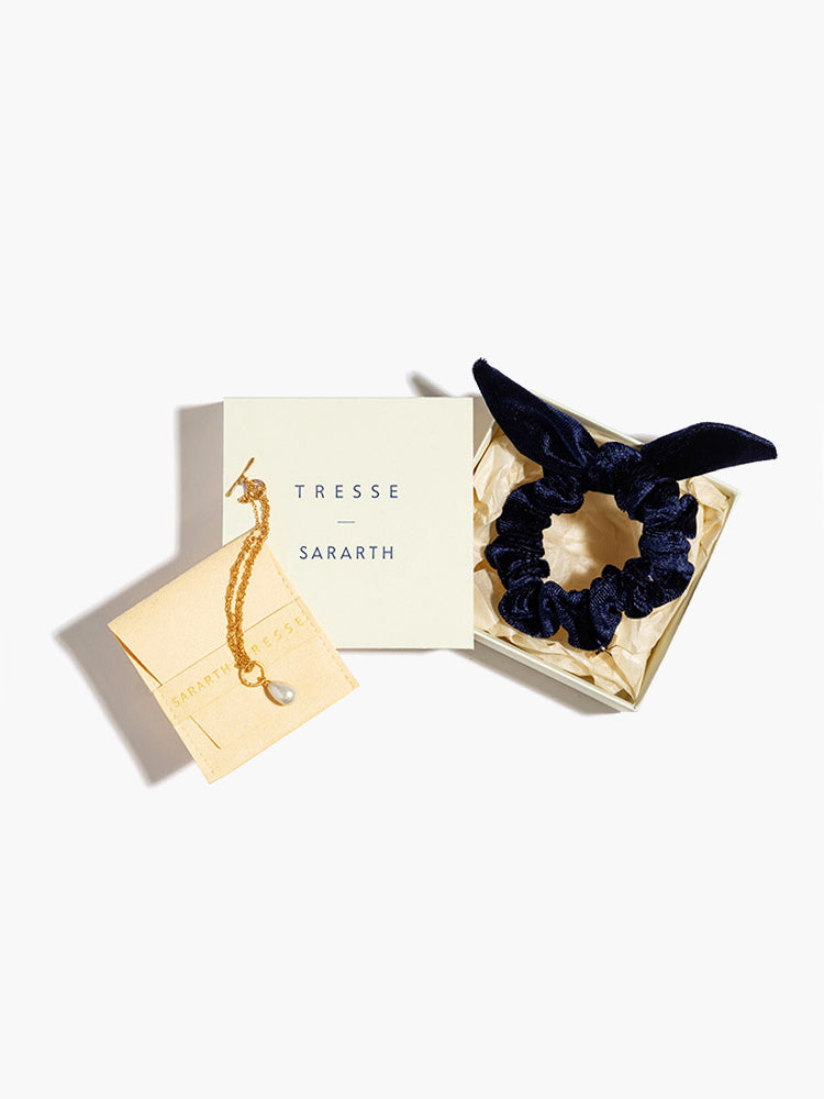 【SARARTH + TRESSE】GOLD Vegan pearl bracelet & MIA ruban chouchou in Navy