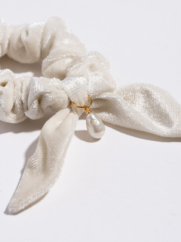 【SARARTH + TRESSE】GOLD Vegan pearl bracelet & MIA ruban chouchou in White