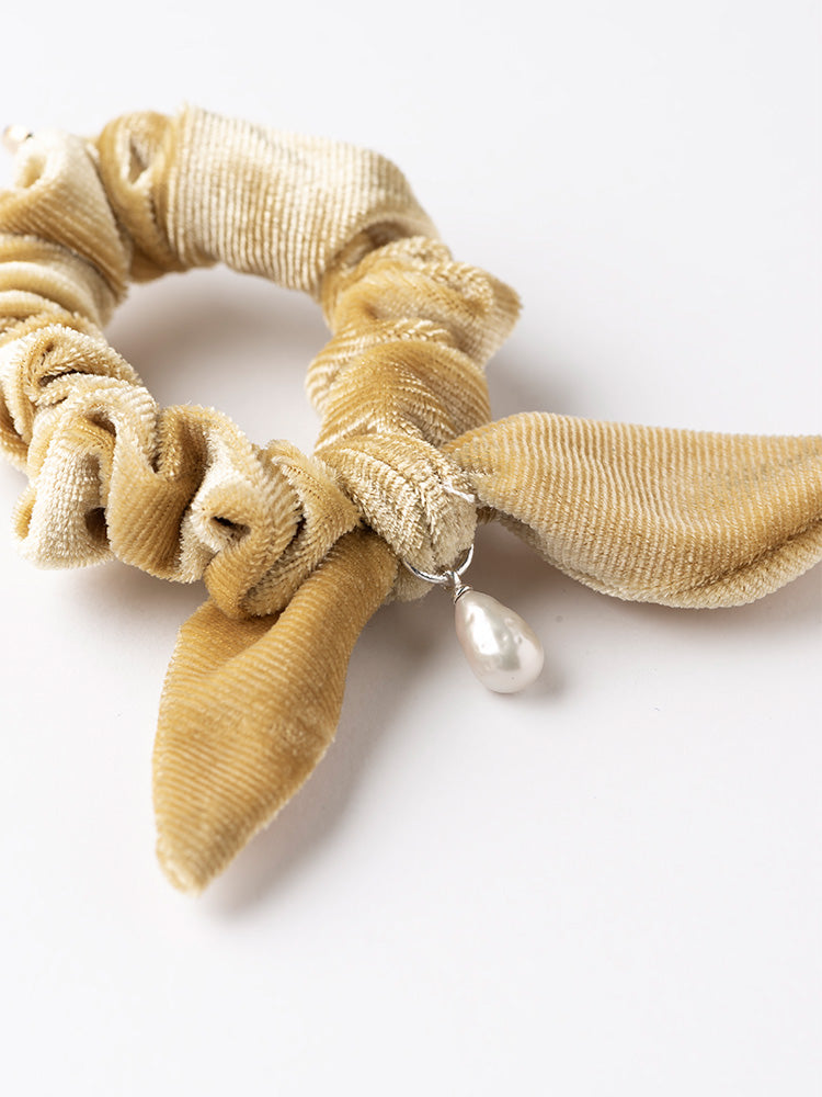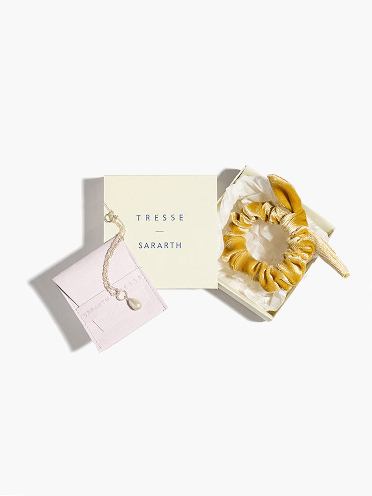 【SARARTH + TRESSE】SILVER Vegan pearl bracelet & MIA ruban chouchou in Mustard