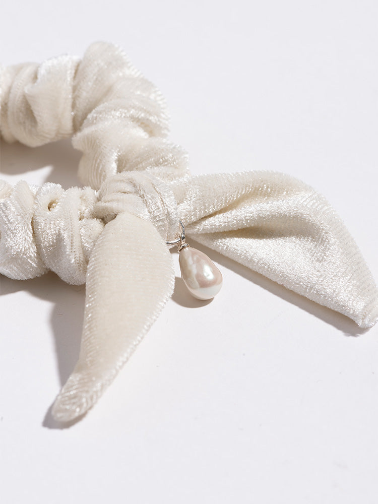 【SARARTH + TRESSE】SILVER Vegan pearl bracelet & MIA ruban chouchou in White